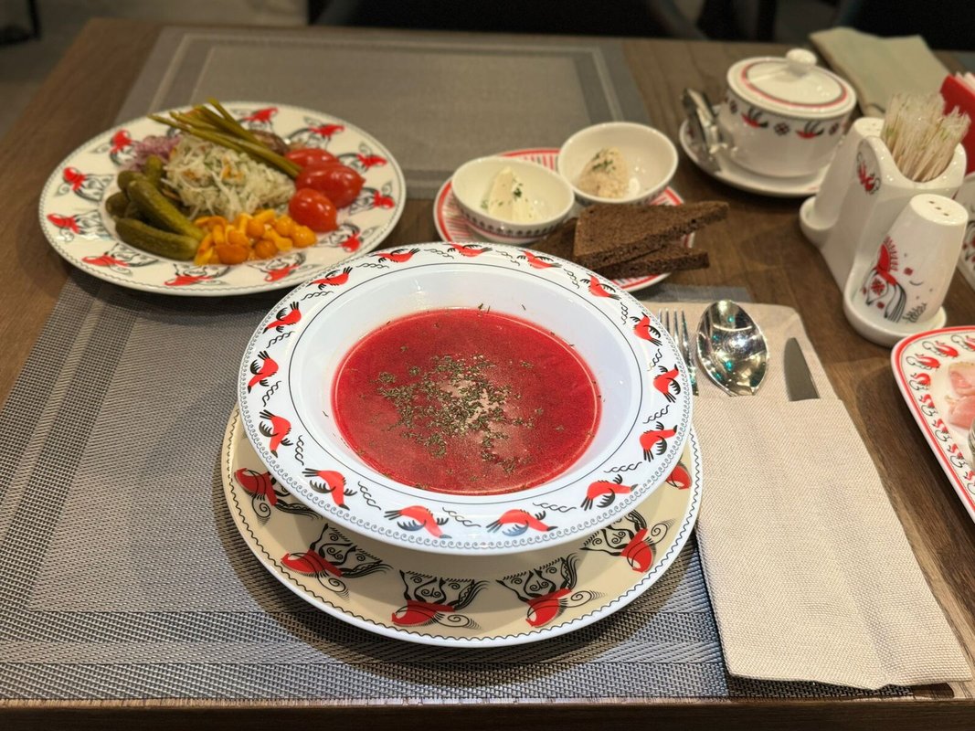 Мы предлагаем блюда русской кухни. Национальные кулинарные творения откроются вам с новой стороны. Чего только стоит обилие солений. Или закажите привычные супы, тушёные вторые блюда и мучные сладости. Вместе с тем у нас готовят авторские блюда. Особые блюда от шеф-повара смогут удивить и приятно порадовать даже заядлого любителя отведать чего-нибудь нового. Мы предлагаем вам оценить новые грани в кулинарном деле!